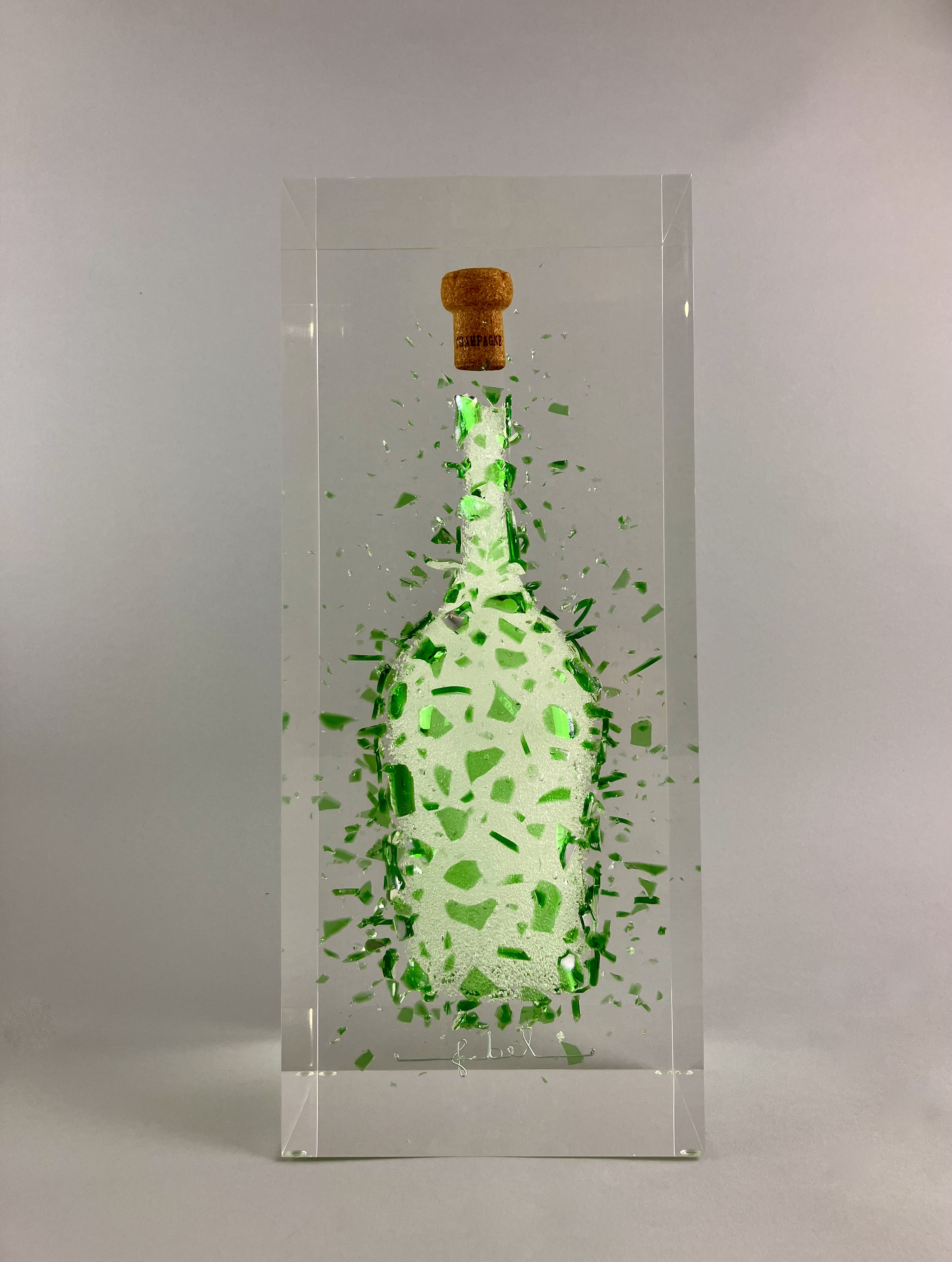 Glass bottle and cork in acrylic glass